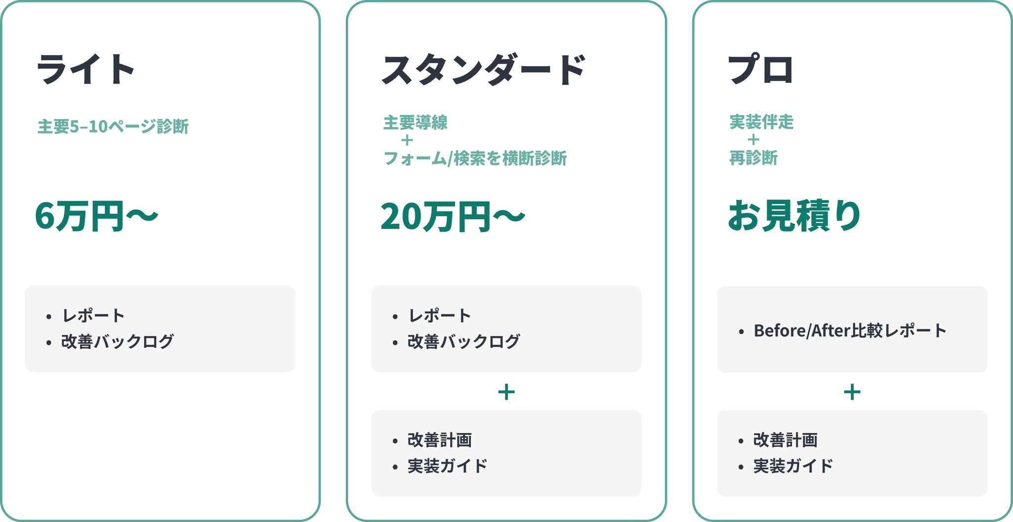 根拠条文・再現手順・実装例つきの監査レポートで説明工数を下げることができます。